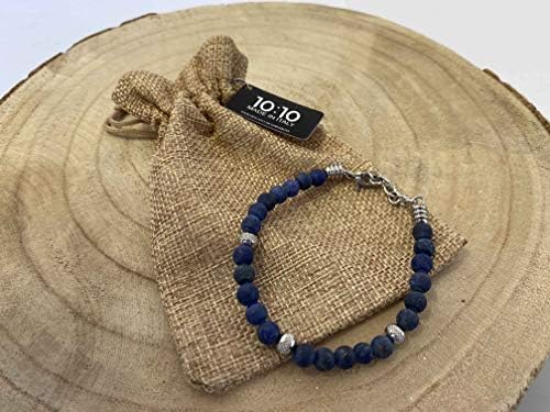 10:10 Bracciale con pietre naturali lapislazzuli frost da 6 mm, beads in acciaio inox, bracciale molto resistente prodotto in Italia