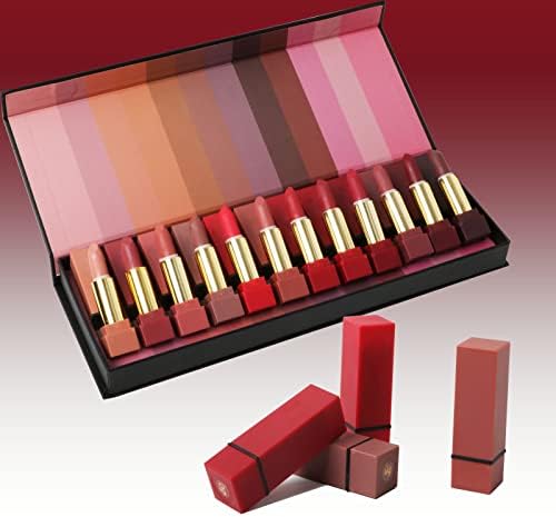 Questo set regalo di rossetti contiene 12 diverse tonalità altamente pigmentate per tutte le occasioni, sia in ufficio che per un evento serale elegante. Applicato delicatamente come la seta, lascia una finitura opaca e vellutata che lascia le labbra morbide e incredibilmente lisce. La cera d’api naturale assicura una tenuta di lunga durata e il complesso di polimeri conferisce alle labbra un aspetto più morbido e pieno, per un risultato perfetto da mattina a sera! Questi splendidi rossetti offrono colori vibranti e facili da applicare per un look perfetto e una copertura totale per un look assolutamente elegante e bellissimo!