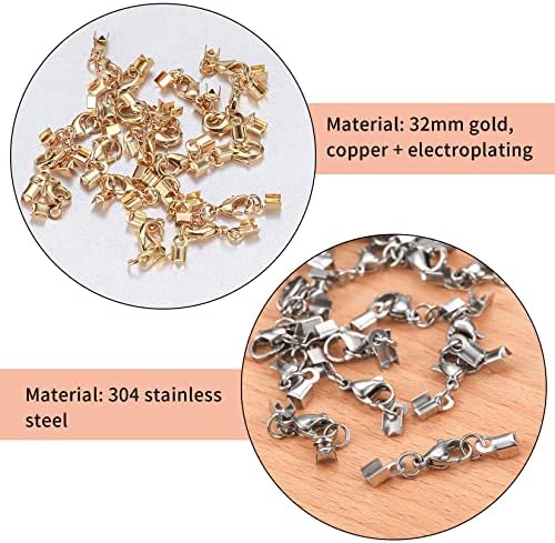 20 Pezzi Chiusura a Moschettone Fermagli, Chiusure Lobster Claw con Cord End Ganci Chiusure per Collana, Braccialetti Fai Da Te – 10 Pezzi Argento/10 Pezzi Oro/32 mm