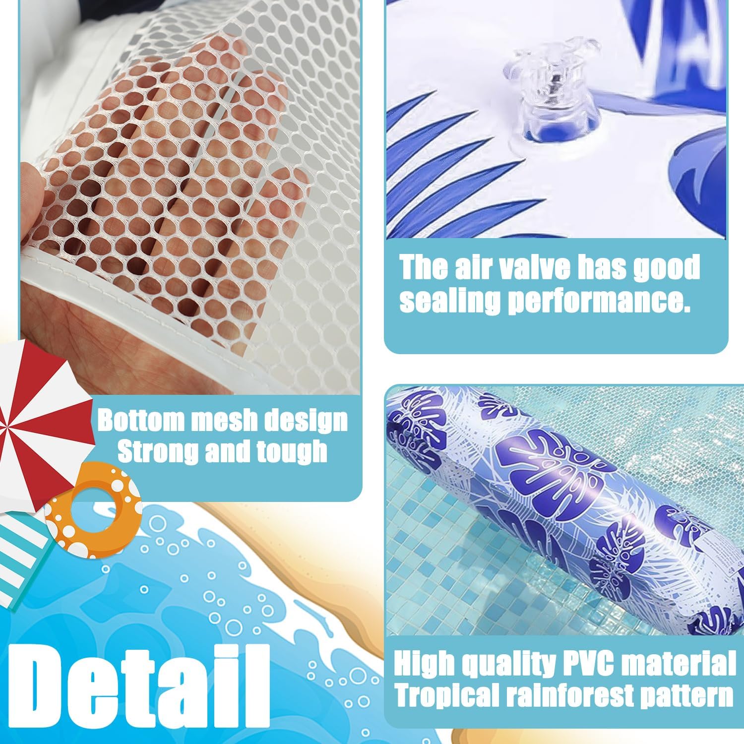 1. 4 in 1 amaca gonfiabile made of thicker Plastica compared to other Amaca, enhanced buoyancy, safety, and durability.