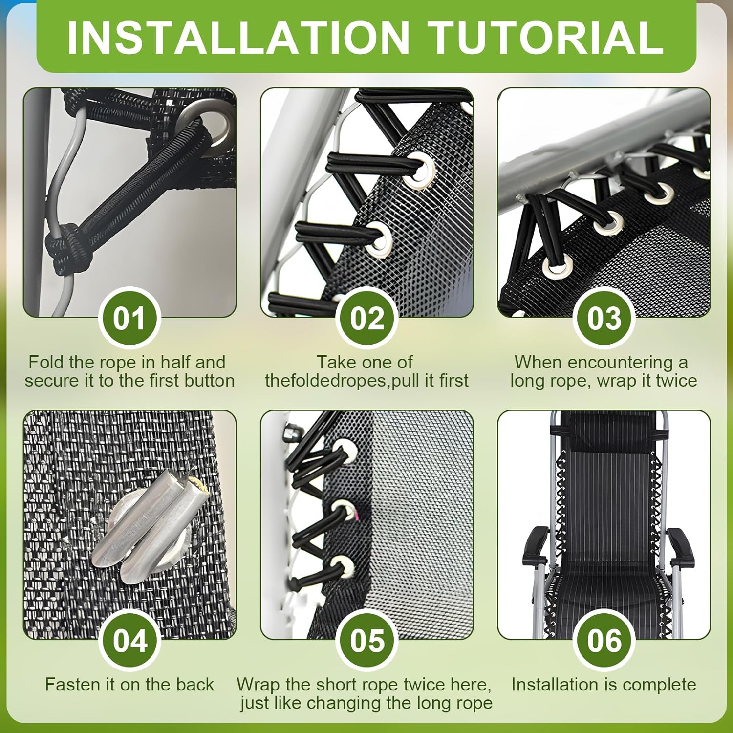 Versatilità di Utilizzo: Adatte a una vasta gamma di sedie, dalle sdraio da giardino alle sedie pieghevoli e alle poltrone relax. Questo kit di corde elastiche è la soluzione ideale per mantenere i tuoi mobili da esterno comodi e funzionali.