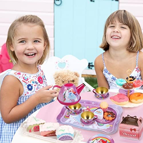41pezzi Set da tè Gioco per Bambini con Dessert Donuts Giocattolo Valigetta Lattina Teiera Unicorno Principessa Set da tè Giochi d’imitazione Unicorno Compleanno Regalo per Bambina 3 4 5 6 7 8 Anni