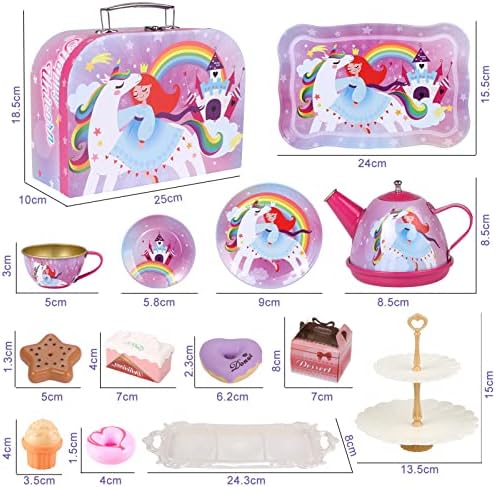 Ottima qualità – Il nostro set da tè in latta della principessa è realizzato in materiale di latta sicuro e senza piombo, dolci in plastica senza BPA, sono tutti sicuri per l’uso! Il nostro set da tè e dessert unicorno può essere facilmente pulito e resistente all’uso. Regali di compleanno unicorno per ragazze perfette, tea party, giocattolo unicorno per bambine, regali per bambine, regali di Natale per ragazze, regali di compleanno, regalo di Capodanno.