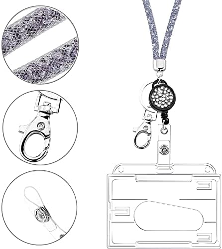 Dimensioni – La lunghezza totale della cinghia in cristallo con fibbia staccabile è di circa 55 cm (include un porta badge retrattile), il portachiavi Yoyo retrattile può estendersi fino a circa 45 cm, e la dimensione del porta badge trasparente è circa 9 x 7 cm, adatto per un badge di identificazione di circa 8,5 x 5,5 cm