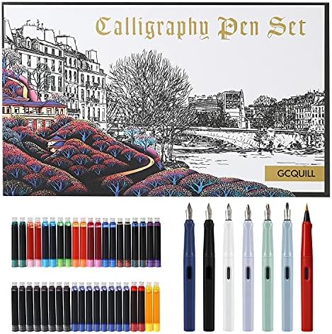 LA CONFEZIONE COMPRENDE – 7 penne stilografiche per calligrafia, 40 cartucce di inchiostro, 7 convertitori di inchiostro.