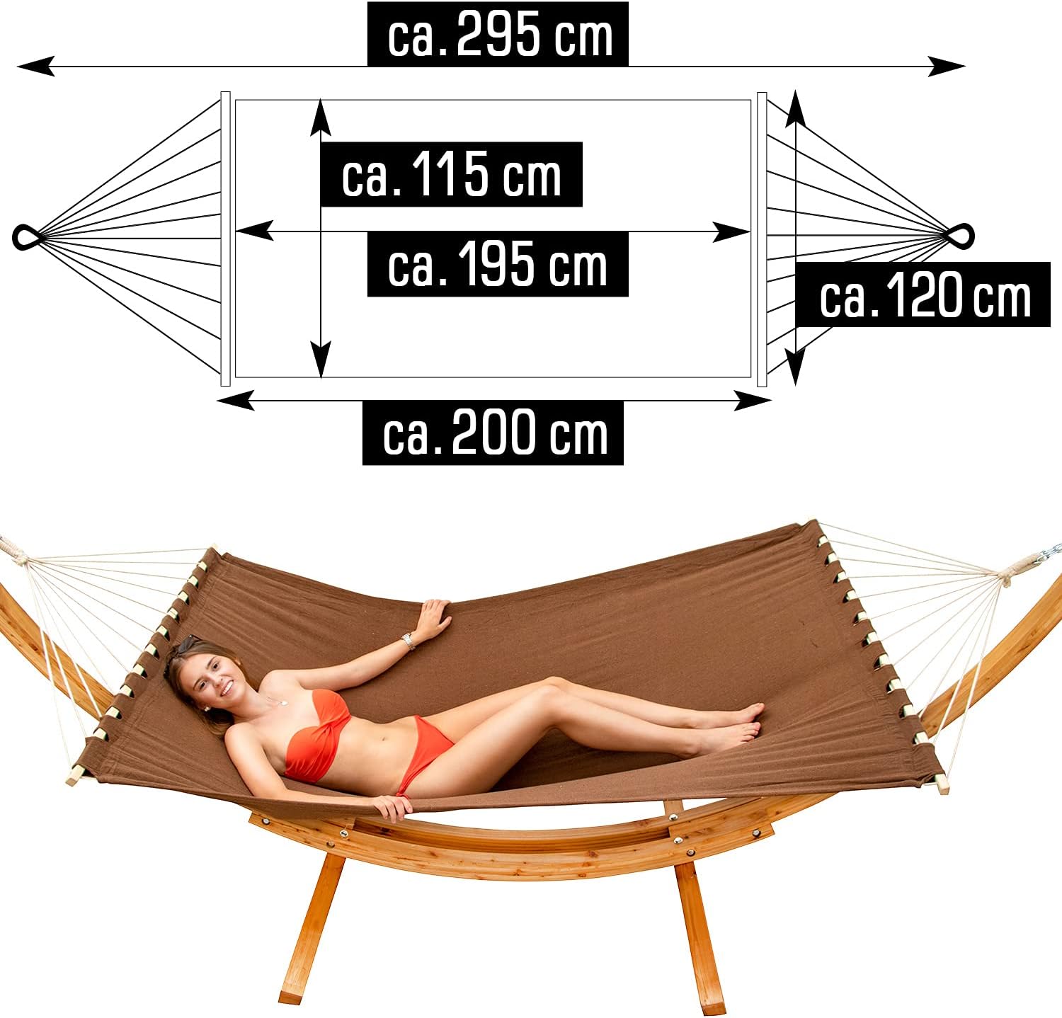 100% ECO-SUSTAINABLE COTTON – DURABLE: The high quality canvas is made of heavy 320gsm cotton fabric. Hand-woven braids at both ends make the hammock even more sturdy and tear-resistant
