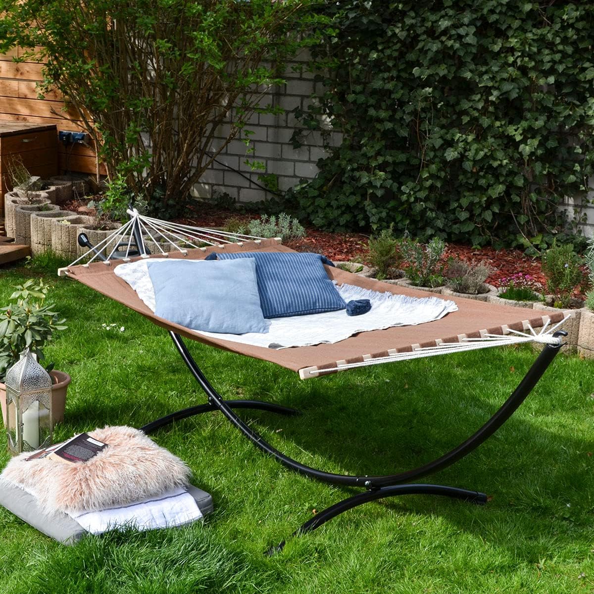AMANKA double hammock – for relaxing alone or in two, the XL towel is approx. 195 x 120 cm, the hammock holds up to 150 kg in weight. Ideal for enjoying the fresh air in the yard, on the balcony and on the terrace