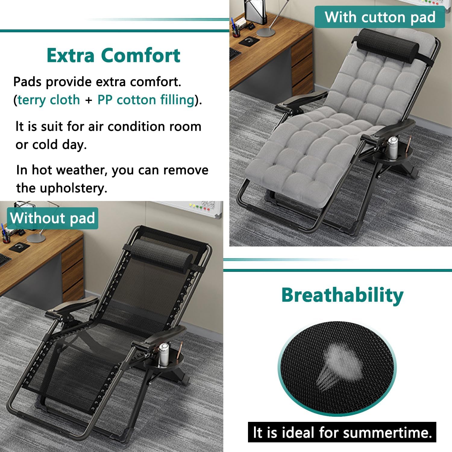 Zero Gravity Chair – Sedia a sdraio da giardino per carichi pesanti, sedia a sdraio regolabile con cuscino rimovibile, chiusura in metallo, supporto per testa e piedi, supporto per bevande per esterni e interni.