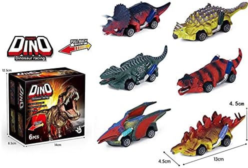 Lo squisito giocattolo per auto dino pull-back realizzato con una forma completa di dinosauro, design realistico e fresco, dettagli perfetti e meccanismo di funzionamento rapido, che può attirare l’attenzione dei bambini e lasciarli indulgere a lungo. Il miglior regalo per auto giocattolo con dinosauri per bambini di età superiore a 3 anni.
