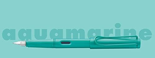 Varietà di colori accattivanti, design senza tempo, ergonomia perfetta. Sono queste le caratteristiche che rendono Lamy Safari uno degli oggetti di cancelleria più amati dai giovani. Comoda da tenere in mano grazie all’impugnatura ergonomica. La penna stilografica è realizzata in plastica ABS di alta qualità di colore acquamarina. L’impugnatura è ergonomica e presenta un design accattivante. La penna viene fornita insieme a una grande cartuccia d’inchiostro T10 di colore blu. La molla in acciaio è di colore argento e ha uno spessore pari a M. La penna stilografica è inoltre dotata di una pratica clip in metallo.
