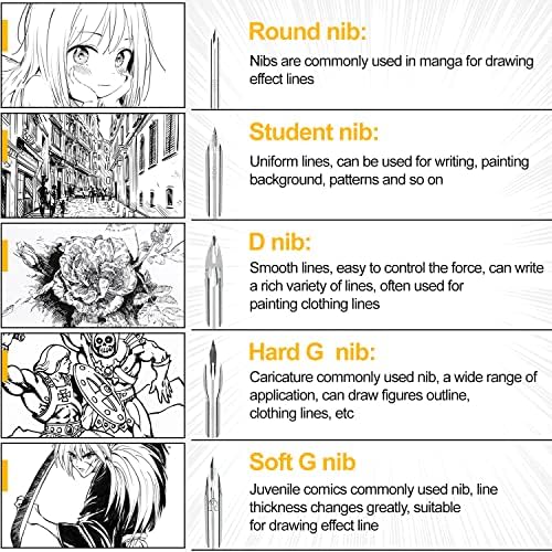 Pennini per calligrafia liscia e stabile: il pennino ad immersione della penna a fumetto, facile da controllare il vigore e stabile da usare, e disegna facilmente linee morbide. Ideale per caricaturisti e artisti per linee sottili, litografia, schiusa incrociata, alfabeti e disegni dritti uniformi