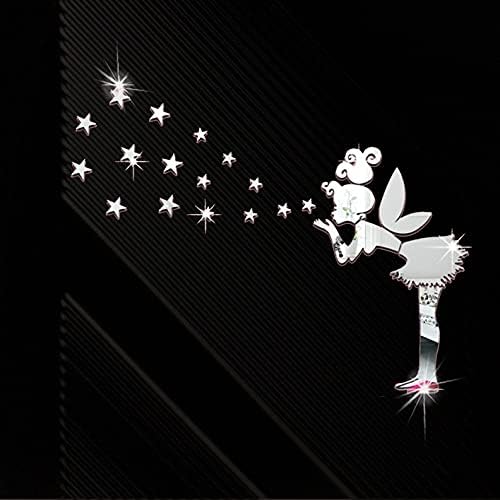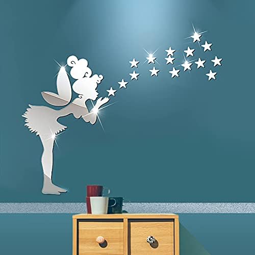 Adesivi Murali 3D, Removibile Adesivi da Parete a Specchio, Fata Ragazza e Stella Adesivi Murali Removibile DIY ,Rimovibile Adesivo specchio d’argento .