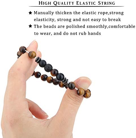 [MATERIALE DI ALTA QUALITÀ] – I braccialetti in pietra naturale sono realizzati con perline di alta qualità da 8 mm e perline in lega da 10 mm di qualità, la pietra naturale possiede bassa densità e peso leggero.Dopo aver selezionato con attenzione, selezionare perline di buona qualità ed escludere quelli cattivi, Lucidatura, Threading a mano. Vale la pena comprare.