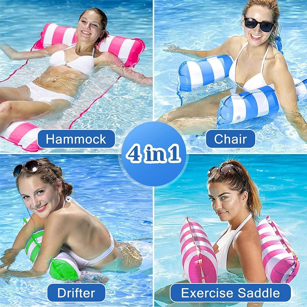 Four in one floating water bed: the unique four-in-one water function can, the 4 in 1 design can be converted into hammock/sports saddle/lounger/drifter, giving you a different experience