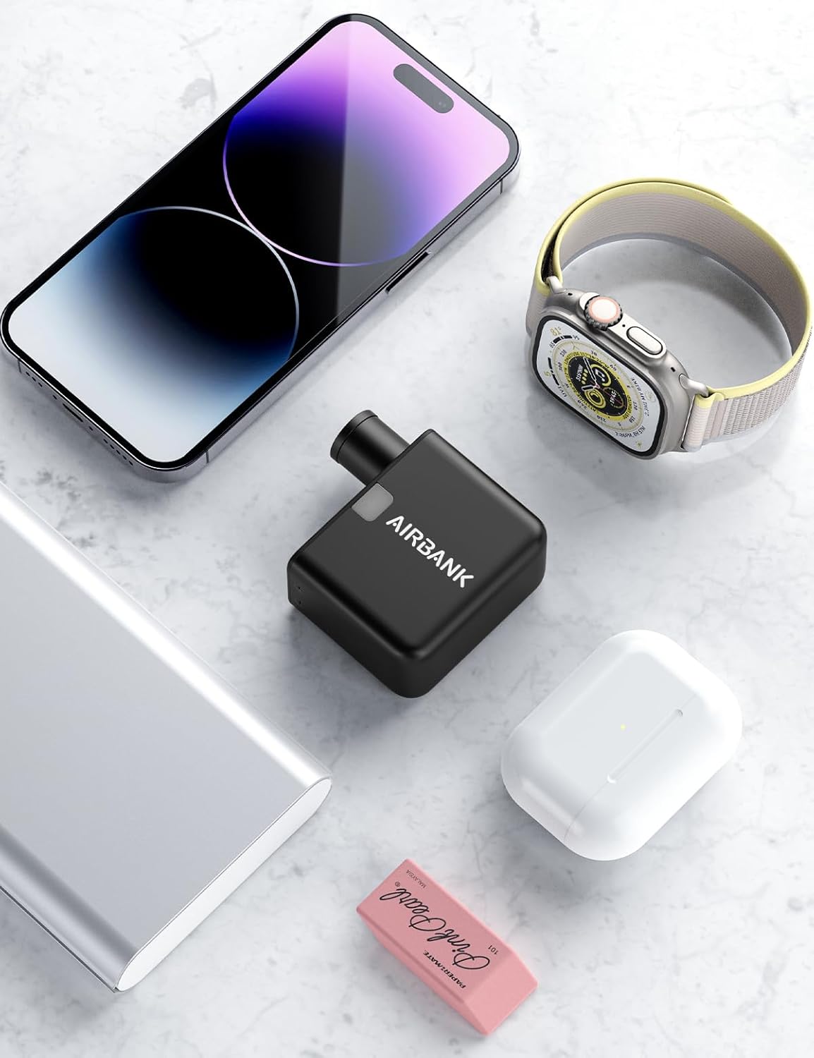 Rispetto ad altre pompe d’aria elettriche, AIRBANK pompa d’aria tascabile richiede solo 25 minuti e poi è completamente carica.
