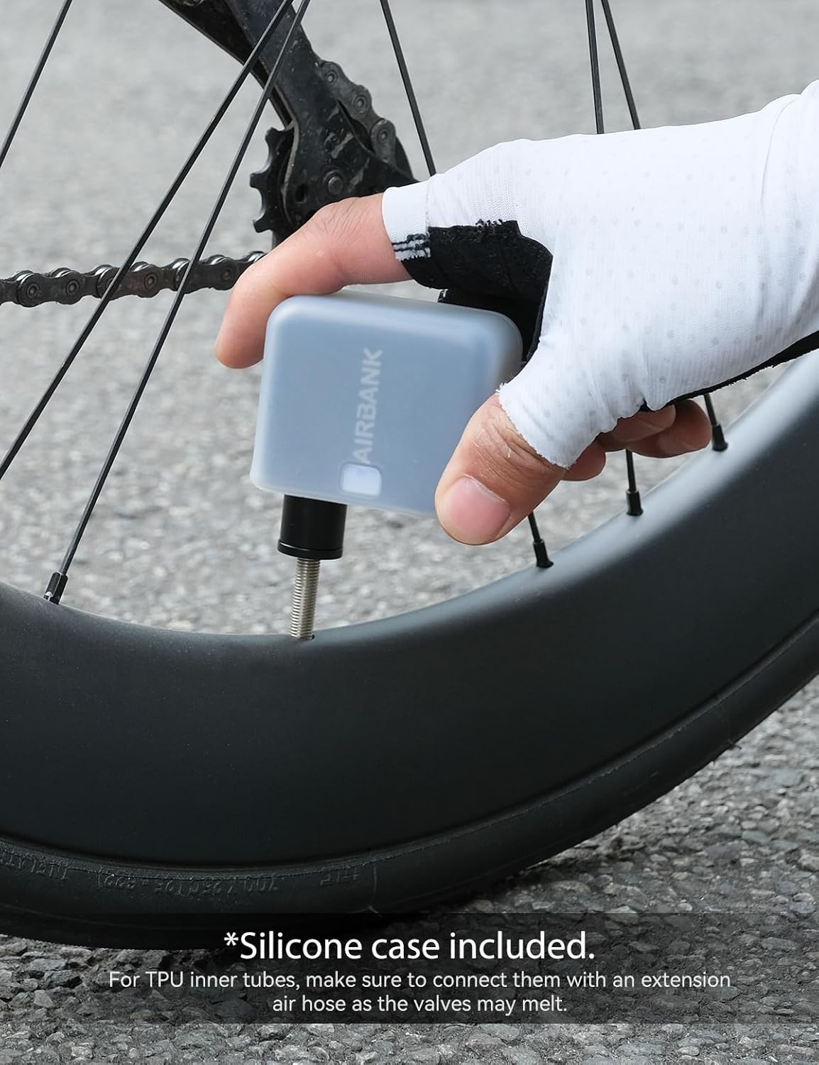 Viene fornito con una copertura in silicone, per una migliore protezione. Utilizzare la copertura in silicone prima del gonfiaggio, poiché la pompa è molto calda durante il processo di gonfiaggio.