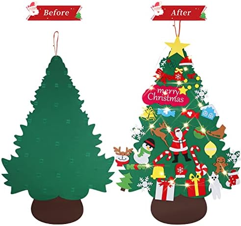 Albero di Natale in Feltro per Bambini (Versione LED), 3.5 Ft DIY Albero Natale Feltro, Albero di Natale in Feltro Con 34 Staccabili Ornamenti & 50 Luci LED,per Regali Di Natale Party Decorazioni Da Parete Per Porte