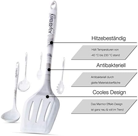 ALPOON’S Set di utensili da cucina in silicone – Set di utensili da cucina in silicone con anima in acciaio molto resistente, utensili da cucina in silicone resistente al calore fino a 230 °C