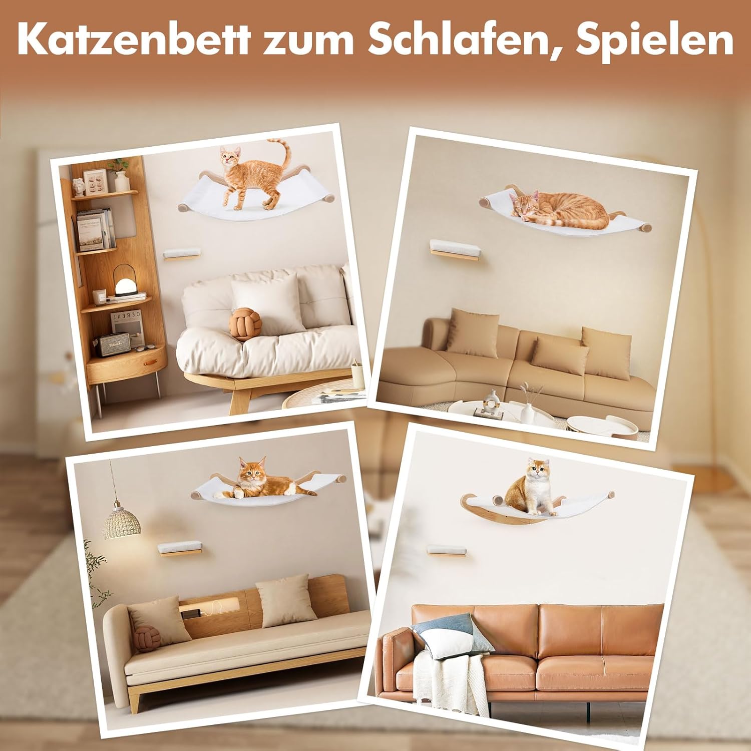 2️ª Robusto legno massiccio e portata XL: il set da parete da arrampicata in legno di caucciù sostenibile supporta fino a 35 kg. La struttura robusta garantisce anche il gioco selvaggio, ideale per gatti adulti.