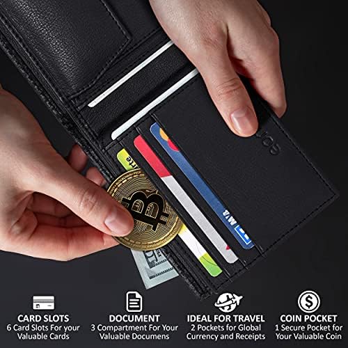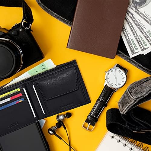 100% vera pelle: Per offrire la migliore esperienza utilizziamo il miglior materiale per i nostri prodotti. La pelle utilizzata per il portafoglio proviene dalla mucca animale ed è genuina al 100%, puoi provarla in qualsiasi laboratorio.Blocco RFID: Assicurati che i nostri portafogli in pelle sono dotati della tecnologia avanzata di blocco RFID che protegge le tue preziose informazioni archiviate sui chip RFID da scansioni non autorizzate mentre sei in viaggio.Design del portafoglio super sottile : Con le dimensioni del portafoglio di 10,5X8,0.X2 cm, si adatta perfettamente alla tasca anteriore e posteriore. Fornisce spazio sufficiente per conservare i tuoi oggetti di valore in movimento sicuri e organizzati in un unico posto. Questo design rende il portafoglio unisex, sia per uomo che per donna. Fa anche un buon oggetto regalo.
