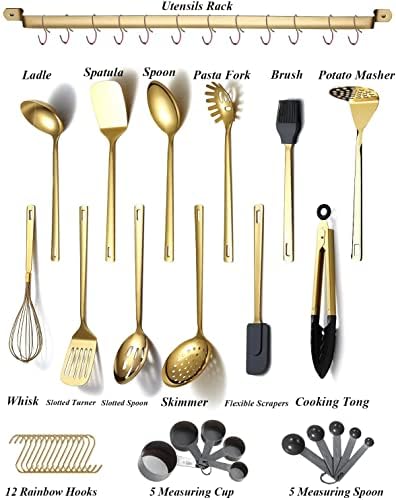 Design semplice e moderno: realizzato in acciaio inossidabile di alta qualità, forte antiruggine. Il processo di placcatura in oro titanio, sembra bello e lussuoso, è una bella decorazione della tua cucina e migliora l’esperienza di cottura.