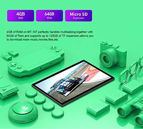 【Ampia memoria】 64G Rom incorporato, RAM 4G e slot per scheda SD, possono essere espansi per supportare la scheda di memoria 128G.Il tablet Android supporta l’utilizzo del cavo OTG per connettersi ad altri dispositivi, come tastiera, mouse, altoparlante ecc.