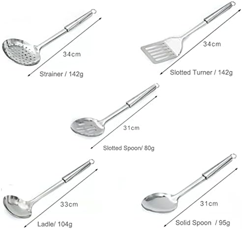 Aoleytech Set di 5 utensili da cucina in acciaio inox, set di utensili da cucina, in acciaio inox, colore: argento