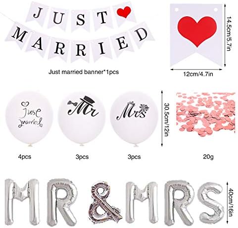 Set di decorazioni per feste di matrimonio: riceverai striscioni con lettere “JUST MARRIED” con palline in alluminio “MR & MRS”, progettati per le coppie appena sposate per creare un’atmosfera romantica per il matrimonio o la festa di fidanzamento