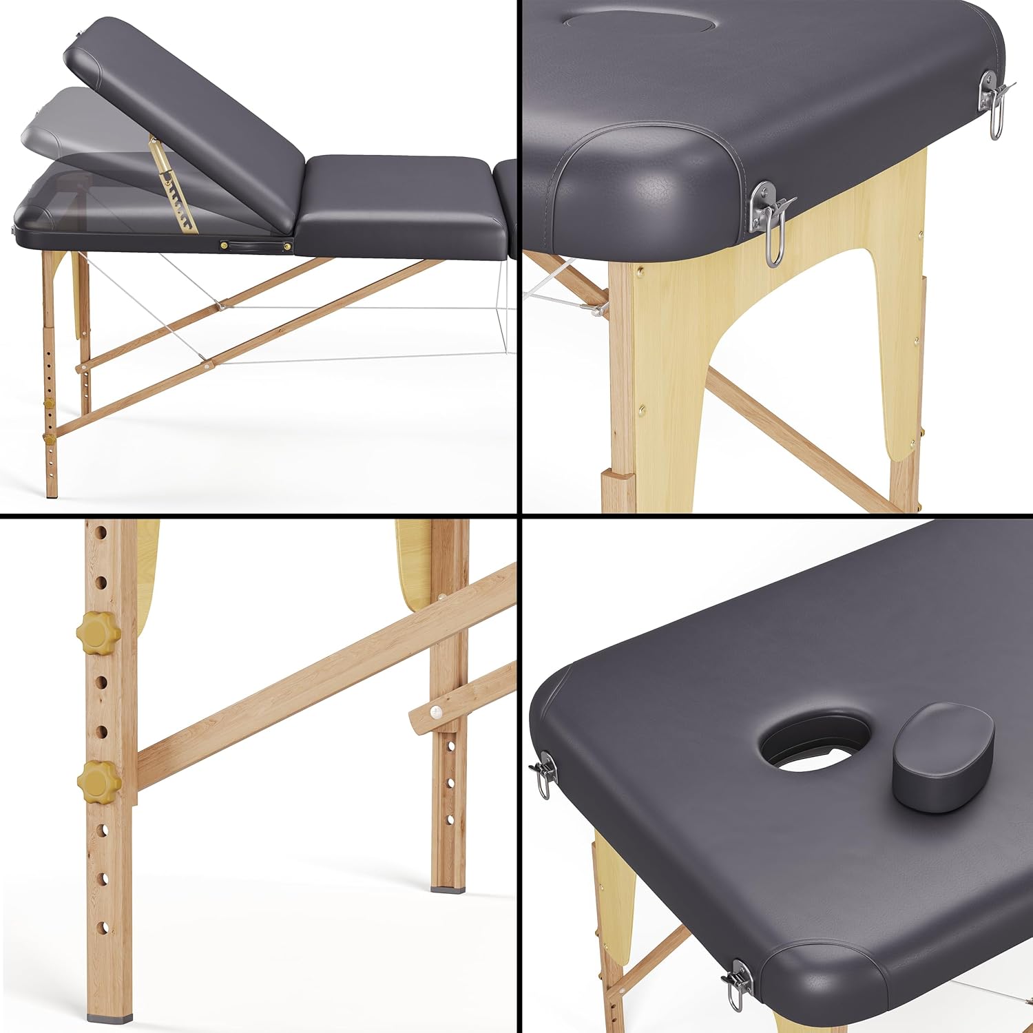 3-zone wooden bed for beauticians, massage therapists and physiotherapists. Maintaining the robustness and strength of all other sun loungers, this model with its only 12.8 kg. It is the lightest and most handy to carry and use.