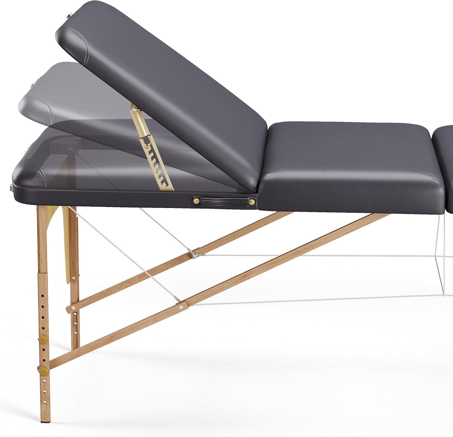 Schienale regolabile fino a circa 60° e in 10 diverse posizioni. Angoli arrotondati e rinforzati – Pannello Reiki – Borsa portalettino