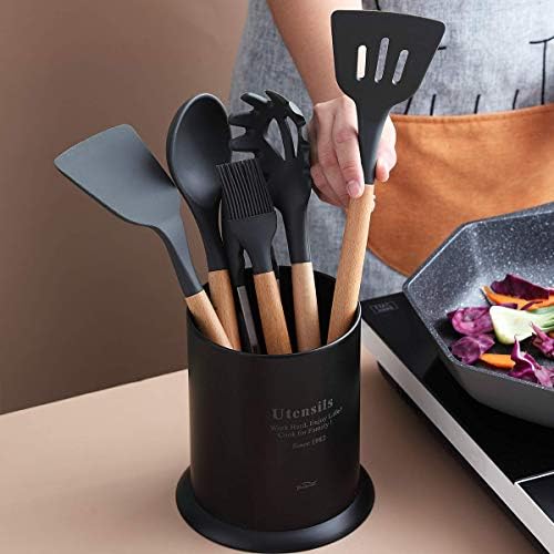 Materiale di alta qualità: questo portautensili in acciaio inossidabile di alta qualità, robusto e resistente alla ruggine. Il rivestimento di colore nero satinato rende il portautensili molto bello, è un’idea regalo per la nuova casa.