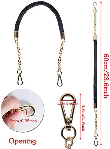besbomig 2 Pezzi Manici di Ricambio 60CM Cinturini in Pelle PU per Borse a Tracolla Ganci Metallici Catena per Borsa Artigianato Forniture,Nero