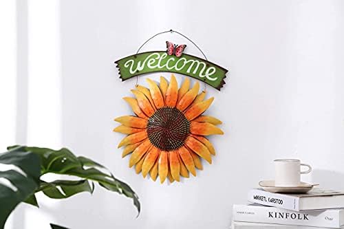 🌞Design unico e abbinamento: il biglietto di benvenuto in metallo con girasole è dipinto a mano per renderlo più consistenza e molto attraente, alto 38,1 cm e largo 30,5 cm. Ci sono simpatiche farfalle e parole di benvenuto sui cartelli decorativi per esterni, che fanno sentire le persone calde ed energiche.