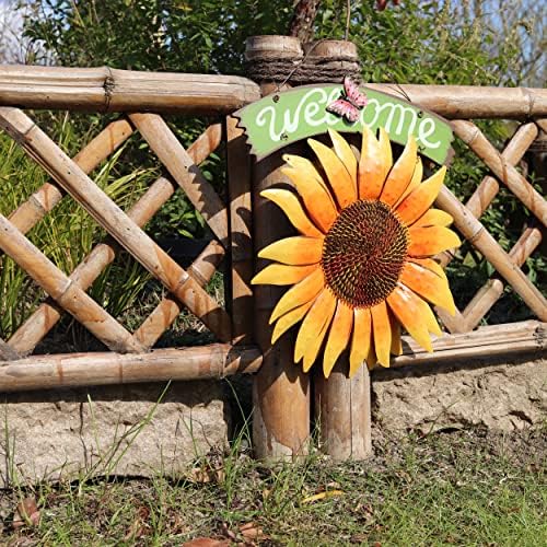 Sinomer – Targa di benvenuto per porta d’ingresso, decorazione per la casa, con fiore di girasole di benvenuto