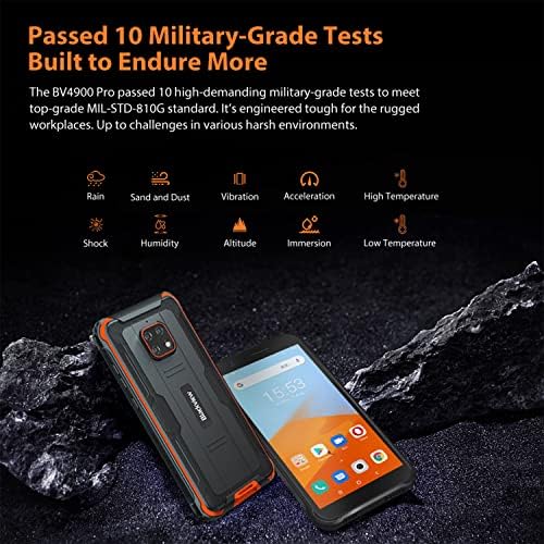 🔋 【Batteria da 5580 mAh di grandi dimensioni + ricarica inversa】 Lo smartphone impermeabile BV4900 Pro è dotato di una batteria da 5580 mAh, che consente di lavorare più a lungo senza spegnersi.La batteria del telefono cellulare BV4900 Pro può garantire 600 ore di standby e 7 ore di esperienza di gioco. Quando i dispositivi elettronici circostanti non hanno elettricità, purché si trovi il cavo OTG, è possibile utilizzare il telefono cellulare BV4900 Pro per la ricarica inversa.