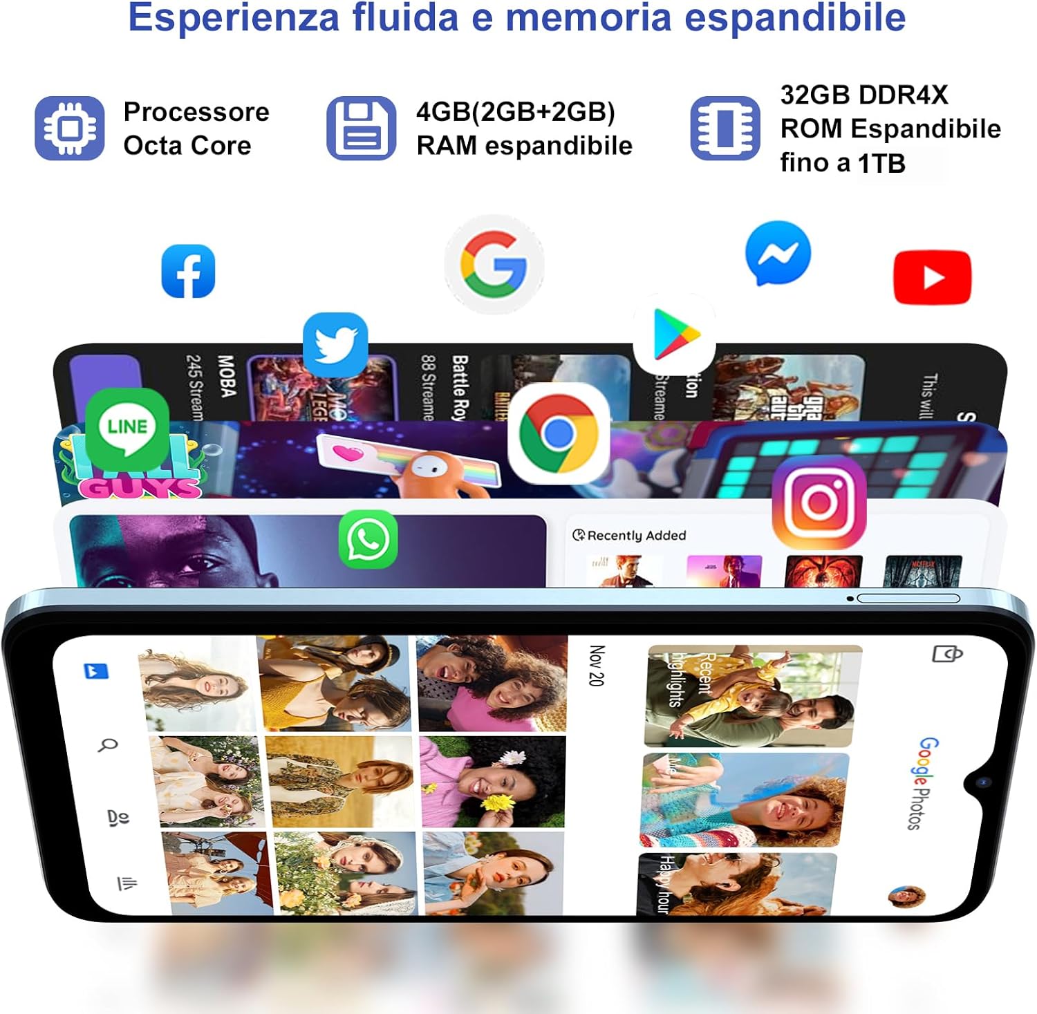 ๐ ๐ ใ๐๐๐ ๐๐๐/๐๐๐๐ ๐๐๐+๐๐๐-๐๐ , ๐๐๐ญ๐-๐๐จ๐ซ๐ใBlackview Wave6C cellulare dispone di una RAM fino a 4GB (LPDDR4X 2GB+2GB Virtuali) insieme al processore octa-core, che consente di eseguire piรน applicazioni contemporaneamente e di passare facilmente da una all’altra. Inoltre, la ROM da 32GB, con possibilitร di espansione fino a 1TB tramite scheda TF, offre spazio sufficiente per l’installazione di applicazioni e l’archiviazione di file.