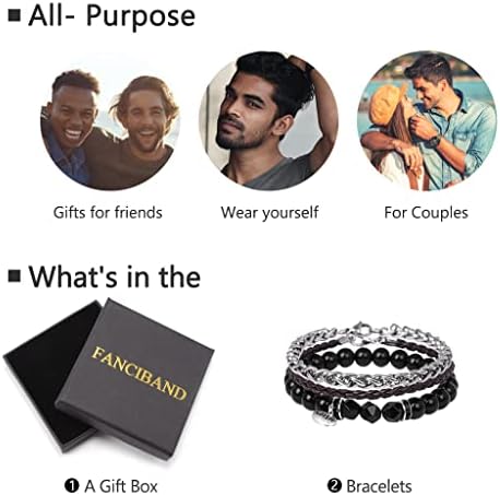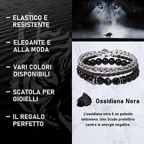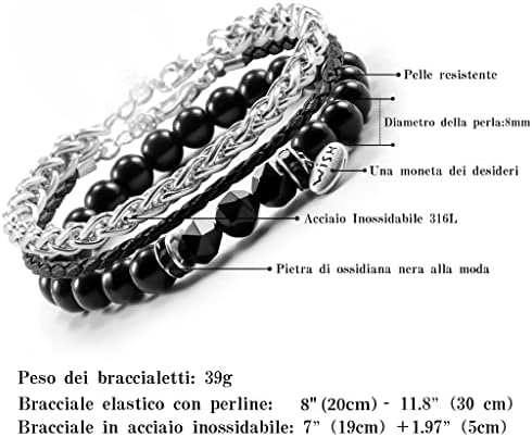Bracciale Uomo Bracciale in Acciaio Inox e Pelle Fatto a Mano Bracciali di Perle di Pietre Naturali Occhio di Tigre Ossidiana Turchese Regali Uomo Regalo Fidanzato Gioielli Uomo Ciondolo dei Desideri