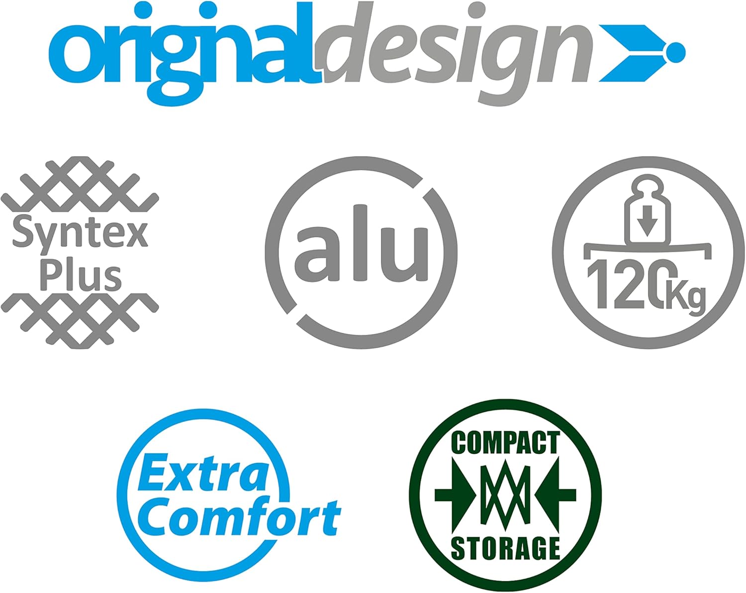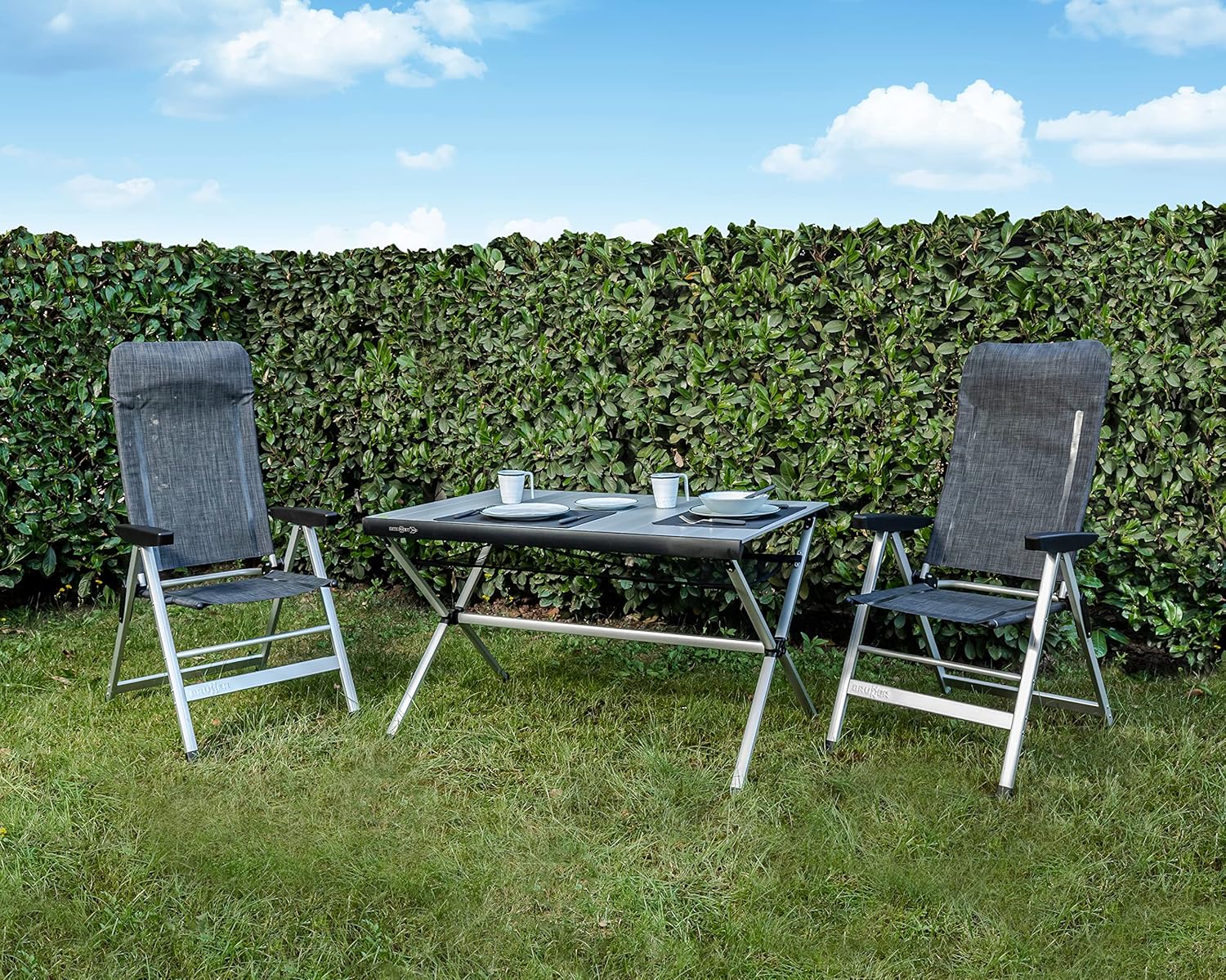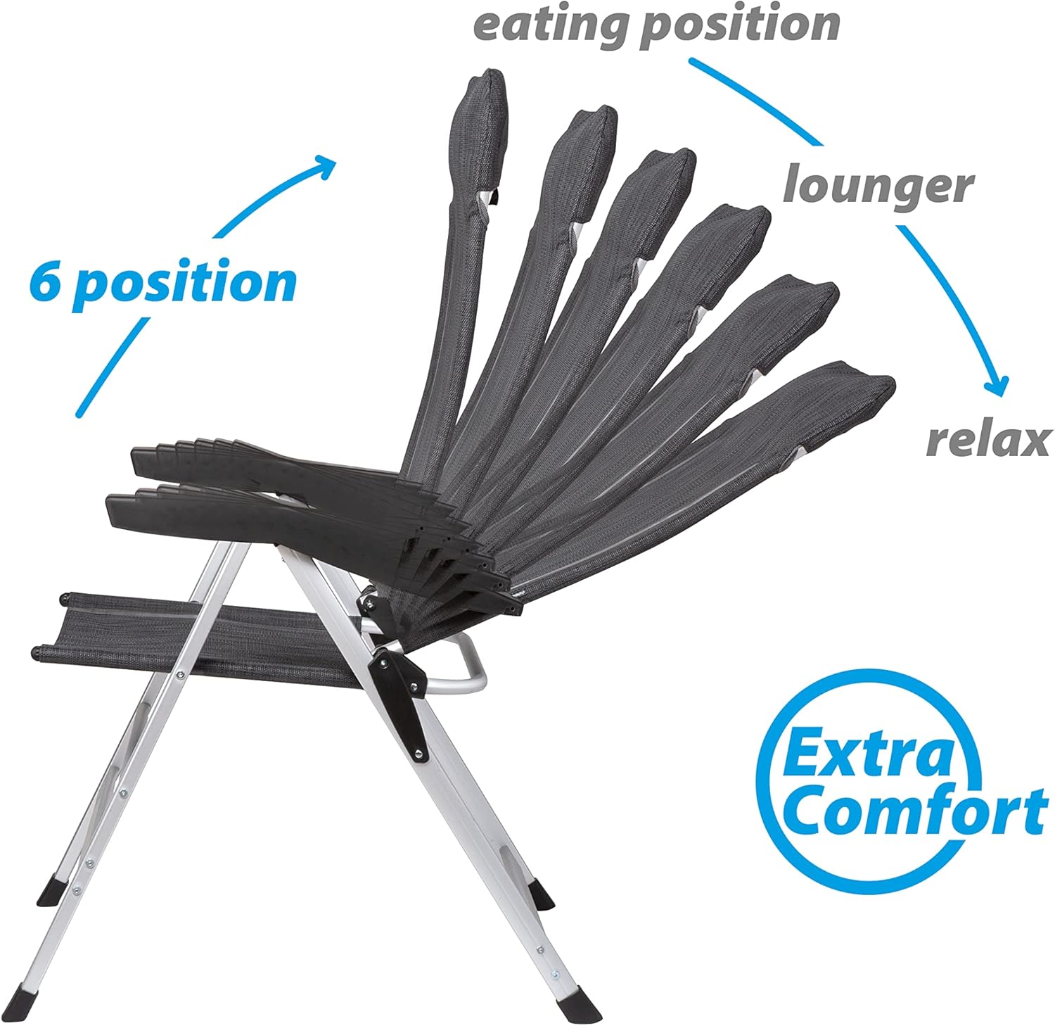 Sedia pieghevole a 4 gambe con schienale reclinabile a 6 posizioni.