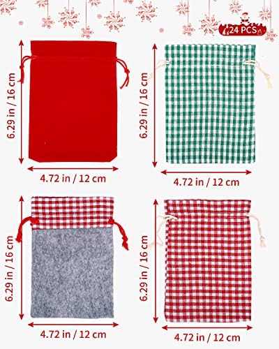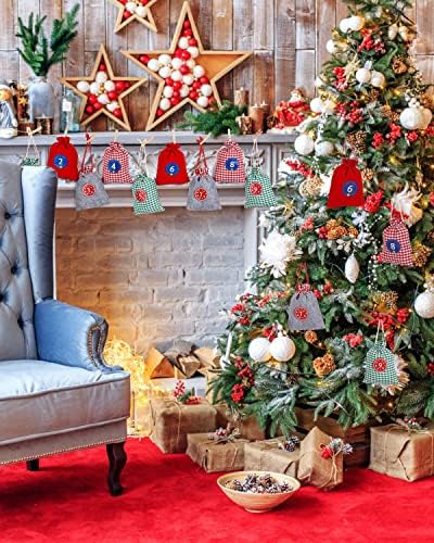 Combinazione di calendario natalizio: riceverete 24 sacchetti per calendario dell’Avvento, tra cui 4 stili di colore, 3 pezzi con 24 targhe, 24 mollette di legno e una lunga corda di canapa. Calendario dell’Avvento da riempire autonomamente. Aggiungete i sacchetti al vostro spirito di vacanza.