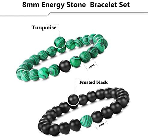 CASSIECA 8 Pezzi 8mm Bracciale Pietra Palline per Uomo Donna Occhio di Tigre Turchese Braccialetto Bianco Nero Pietre Bracciale Elastico Set