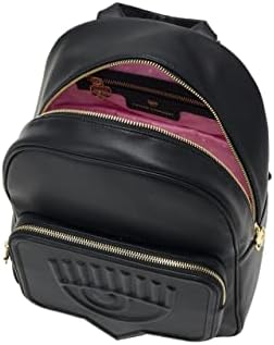 Chiara Ferragni Zaino Large Nero Logo EYELIKE con tasca nella parte anteriore con chiusura zip e spallacci regolabili. Chiusura zaino con zip a doppio cursore. Dimensioni: 36 x 28 x14 Cm