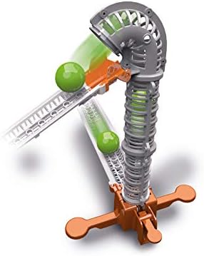Il set di costruzioni contiene uno speciale “ascensore” manuale per far risalire la pallina ad un livello superiore. Basta premere la leva alla base dell’impianto per vedere la pallina saltare verso l’alto!