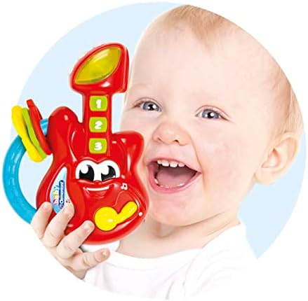 Questa simpatica chitarra con 3 tastoni in gomma farà divertire il bambino suonando divertenti melodie, e lo porterà alla scoperta dei primi numeri con tante musichette