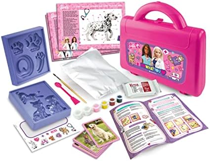 Per tutte le bambine che sognano di diventare veterinarie, un fantastico kit di Barbie Veterinaria per tuffarsi alla scoperta di questo bellissimo mondo! Contiene tutti gli strumenti e le informazioni sul mestiere del veterinario, su cosa fa e sugli animali. Un kit divertente, sicuro e completo per imparare tante informazioni scientifiche sulle caratteristiche degli animali più amati dai bambini. All’interno del kit stampini e gesso per riprodurre modellini di animali, tempere e pennello per decorare, plastilina, una speciale pasta per modellare orme, tavole anatomiche e tante carte informative per imparare tante curiosità e le principali caratteristiche degli animali. Inclusa anche la valigetta del veterinario dove conservare i componenti. Un gioco creativo ed educativo perfetto per esplorare con Barbie questa bellissima professione, pensato per tutti i bambini che amano gli animali e se ne vogliono prendere cura. Un gioco Clementoni ideato e sviluppato per bambine a partire dai 6 anni. Interamente Made in Italy