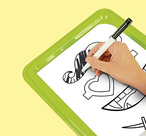 CONTENUTO DEL GIOCO: lavagna, tempere normali, fluo, metallizzate, pennello, pennarello, cartoncini predefiniti e outline per guidare il bambino alla sperimentazione delle diverse tecniche di disegno