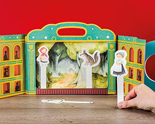 CONTENUTO DEL GIOCO: Un teatrino in cartone 100% riciclato con schede illustrate raffiguranti scene consequenziali di 2 fiabe, scenari neutri e cartellini personaggi. Dimensioni del teatro chiuso: 32,5 x 2,5 x 27h cm