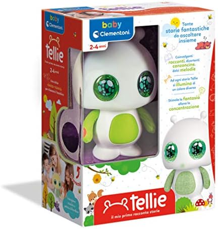Tellie è un simpatico racconta storie che stimola il linguaggio e avvicina i bambini dai 2 ai 4 anni alla musica, accompagnandoli nei diversi momenti della giornata.