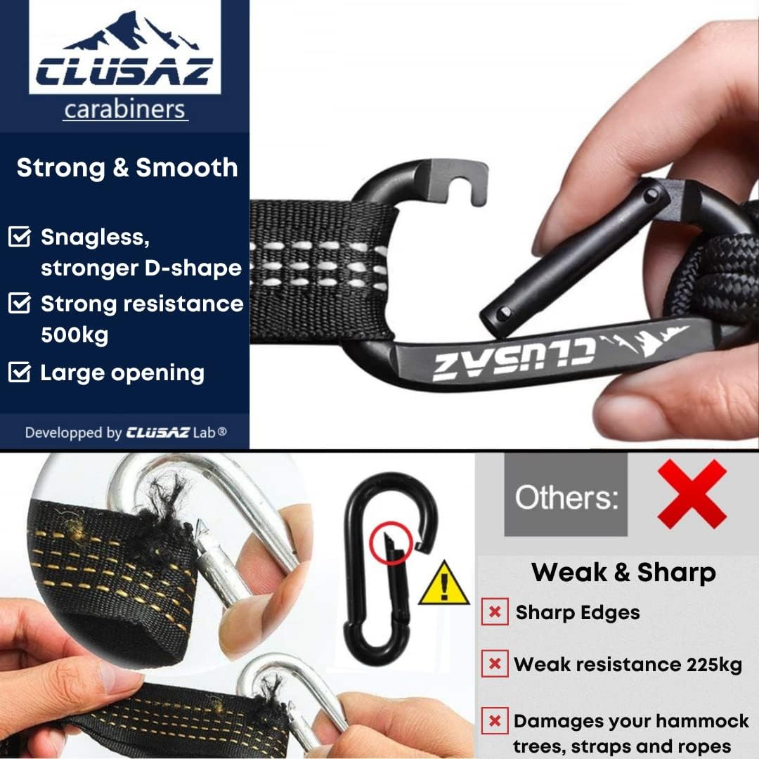 ✅QUICK AND EASY SETUP – The long Clusaz Tree-Friendly straps (total 5 metres) and 20 retaining rings offer the flexibility to arrange the hammock in various positions in a practical way, these accessories help to arrange equipment extremely quickly and easily even for the inexperienced user!