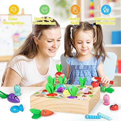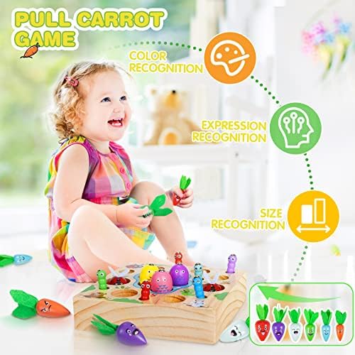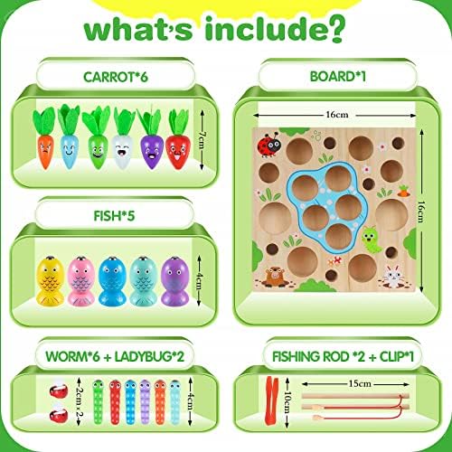 Sviluppo della prima infanzia: gli accessori colorati di questo giocattolo intellettuale Montessori possono esercitare il riconoscimento del colore dei bambini. L’uso di strumenti può esercitare la motricità fine dei bambini e la coordinazione occhio-mano. Abbinare le dimensioni della carota esercita la cognizione spaziale dei bambini.