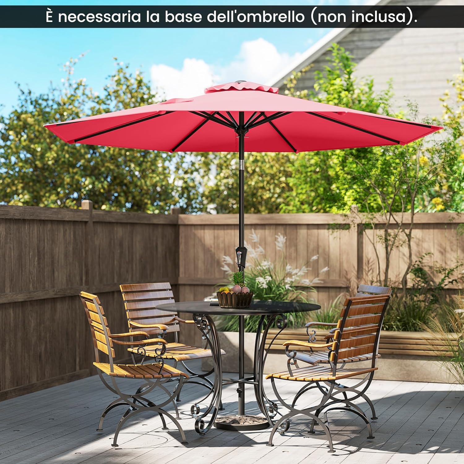 The garden parasol is designed with a PA coated polyester fabric which not only provides excellent sun protection, but is also wear-resistant and fade resistant, ensuring a long service life. The 270cm parasol features an innovative tilt mechanism that allows you to adjust the angle of the shade according to the position of the sun. The ventilated roof promotes the passage of air, creating a cooler and more pleasant experience. With 8 sturdy ribs and a thick metal pole, the parasol is stable and durable. In addition, the safety pin prevents accidental closing, giving you peace of mind while relaxing in the shade.